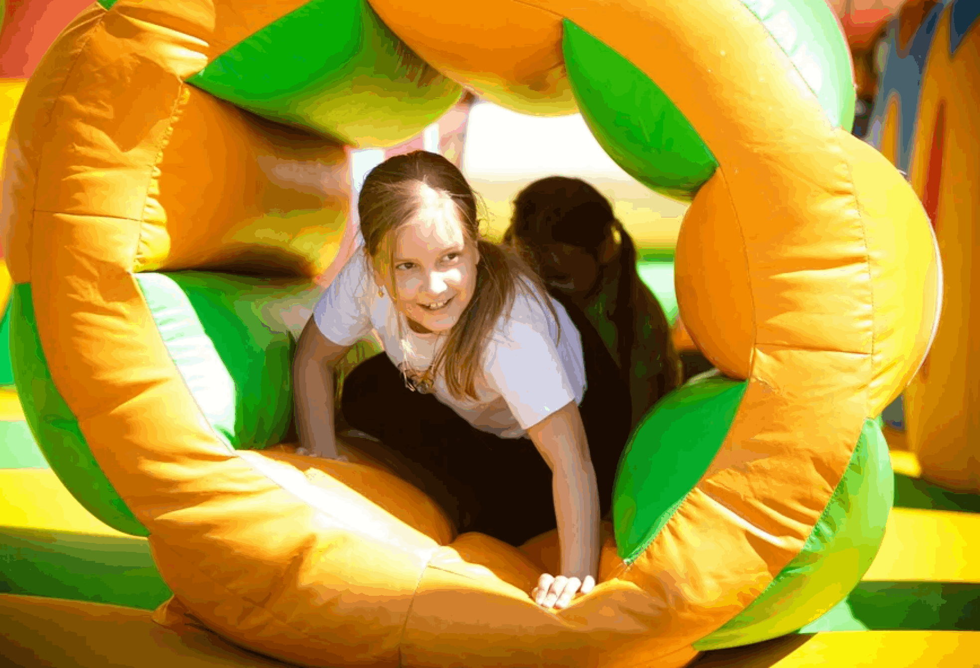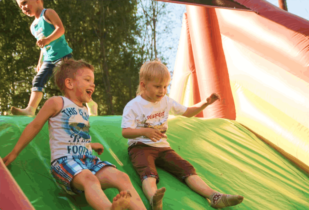 Необходимо учитывать свободное пространство на участке. Надувные горки требуют много места, стандартный батут — меньше.